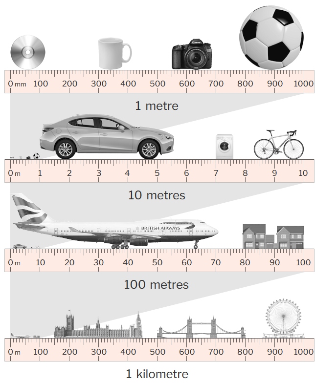 e.g. 10 000 metres can be expressed as 10 kilometres by combining the prefix ‘kilo’ (meaning 1000) with the unit name ‘metre’.