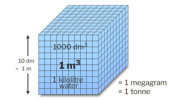For everyday use, one cubic metre of water has a mass of one tonne.
