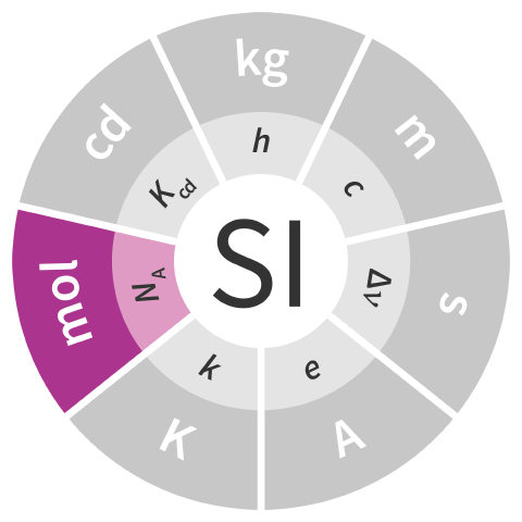 The mole, symbol mol, is the SI base unit of amount of substance.